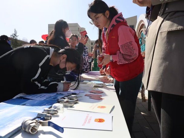 活动现场,通过摆放节水宣传展板、展示节水器具、发放宣传资料等多种形式,引导师生提高保护水资源的意识,将节水理念转变为行为日常。